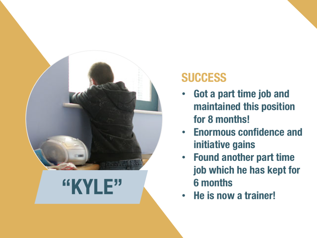 - a participant with developmental challenges progressed into employment and later became a trainer